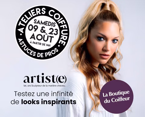 Participez aux ateliers coiffure les samedis 9 et 23 juillet dans tous nos magasins ! Apprenez à réaliser vous-même une infinité de looks avec la gamme Artiste d’Eugène Perma Professionnel ! Gratuit & sans rendez-vous