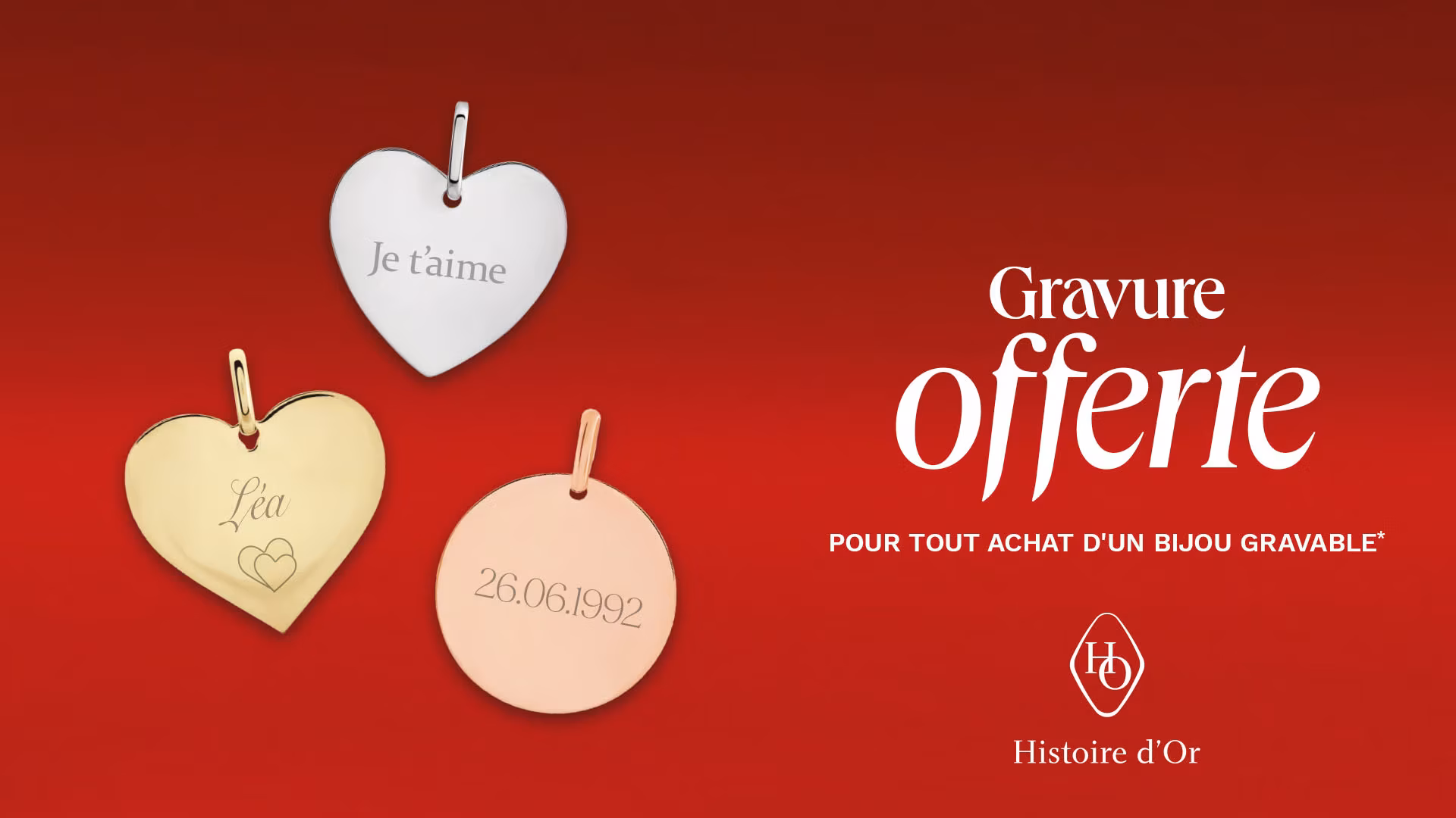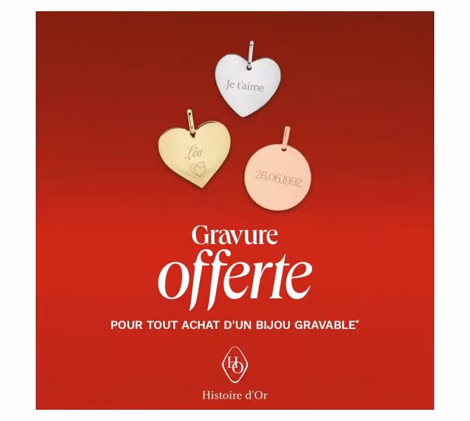 Offre valable jusqu'au 30/09/2026, pour tout achat d'un bijou gravable, sur une face du bijou, en une seule fois.