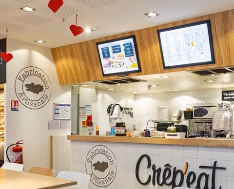 Crêp'eat est un concept de crêperie traditionnelle avec une touche de modernité et surtout beaucoup d'authenticité avec comme promesse un service de qualité, pratique et rapide. Si vos crêpes sont soignées chez Crêp'eat, le cadre n'en est pas oublié et le restaurant de votre centre Rives d'Arcins vous accueille dans une ambiance chaleureuse et conviviale.